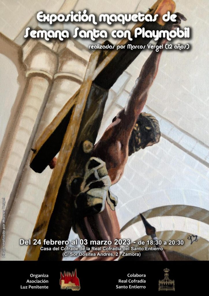La Asociación Luz Penitente, en colaboración con la Cofradía del Santo Eniterro, organiza esta muestra de maquetas de los pasos de la Semana Santa zamorana realizadas por Marcos Vergel, un zamorano de 12 años. Se mostrará al público en la Casa del Cofrade de la Real Cofradía del Santo Entierro (C/ Sor Dositea Andrés, 2), […]
